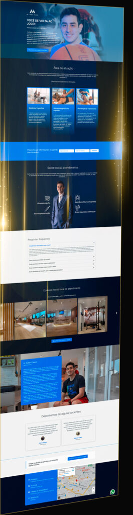 Essas páginas possuem menos elementos e são mais objetivas, justamente para quando um visitante chegar até ela, não perca o foco, que no caso é clicar no botão de agendamento, preencher as informações e entrar em contato com o médico. Ou seja, essas páginas não possuem menu de navegação ou links de redirecionamento para redes sociais, afim de evitar que o visitante saia da página.